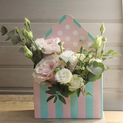 Букет “Мятная свежесть” с розой, лизиантусом, гвоздикой и эвкалиптом