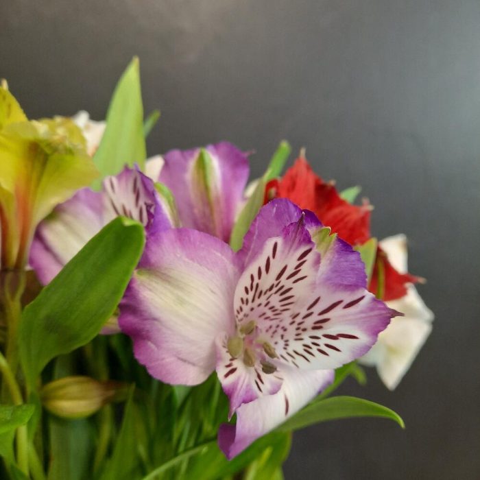 Лента атласная – 2 шт.альстромерия микс – 17 шт.