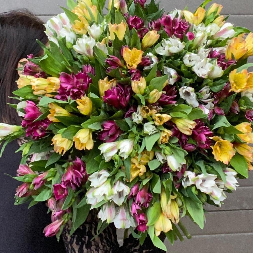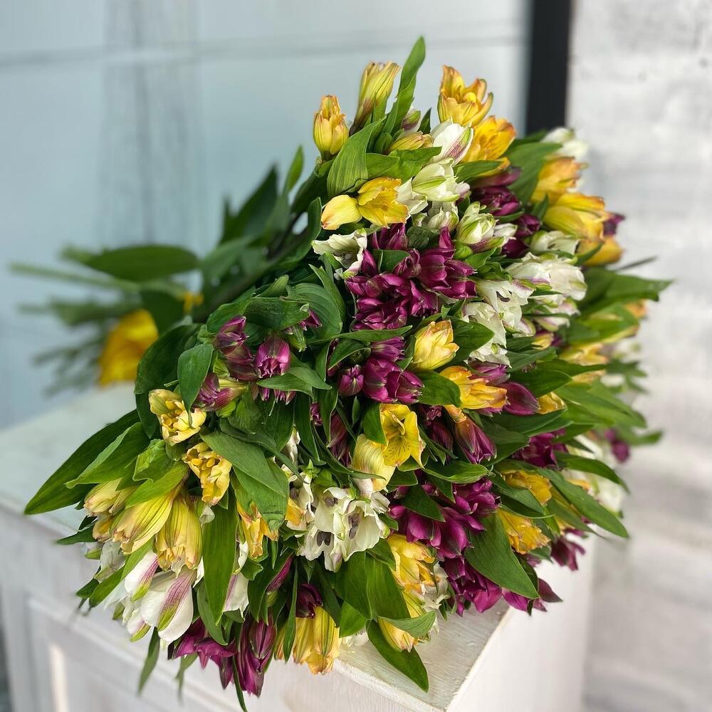 Лента атласная – 1 шт.Альстромерия Микс Европа – 30 шт.
