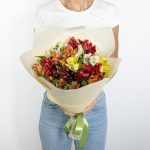 Альстромерия – 17 шт. Открыточка с вашими пожеланиями – 1 шт. Упаковка дизайнерская – 1 шт.