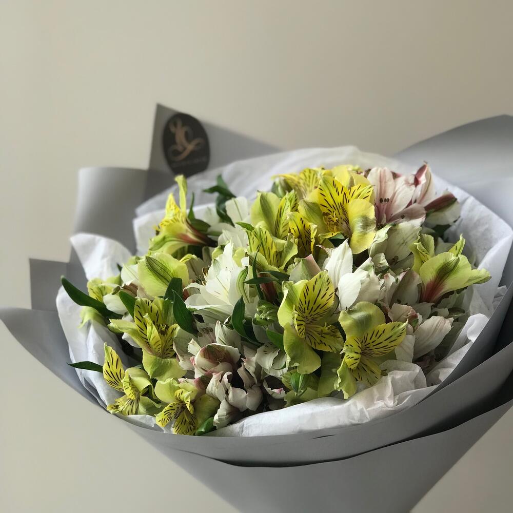 Альстромерия – 11 шт.Лента атласная – 1 шт.Тишью – 1 шт.Корейская пленка – 3 шт.