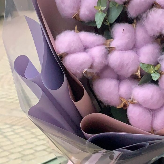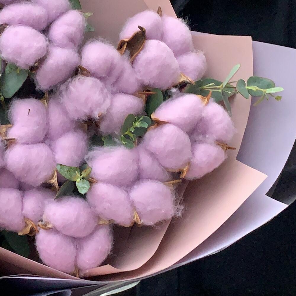 «Лавандовое созвездие» Букет из розы, гвоздики, статица и хлопка