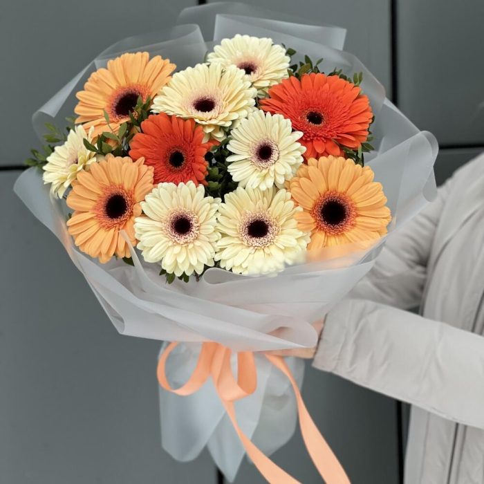 Букет Луч солнца из гербер и зелени