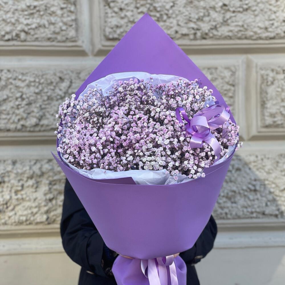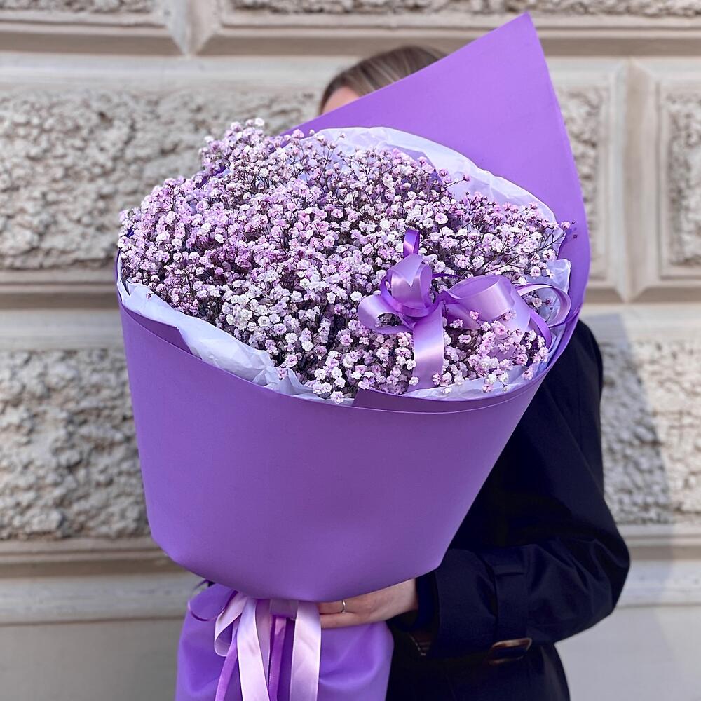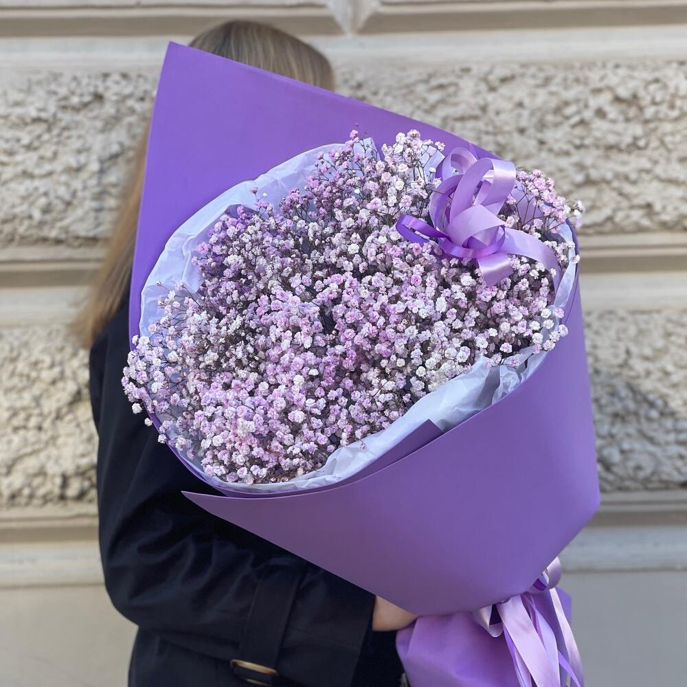 Гипсофила – 13 шт.Лента – 3 шт.Тишью – 3 шт.Упаковка дизайнерская – 1 шт.
