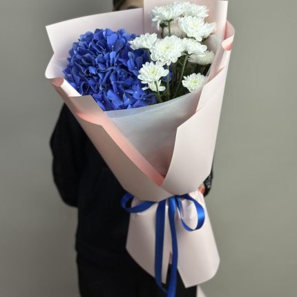 Авторский букет с гортензиями, маттиолой и диантусами