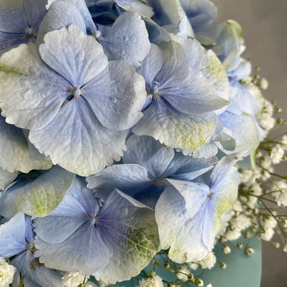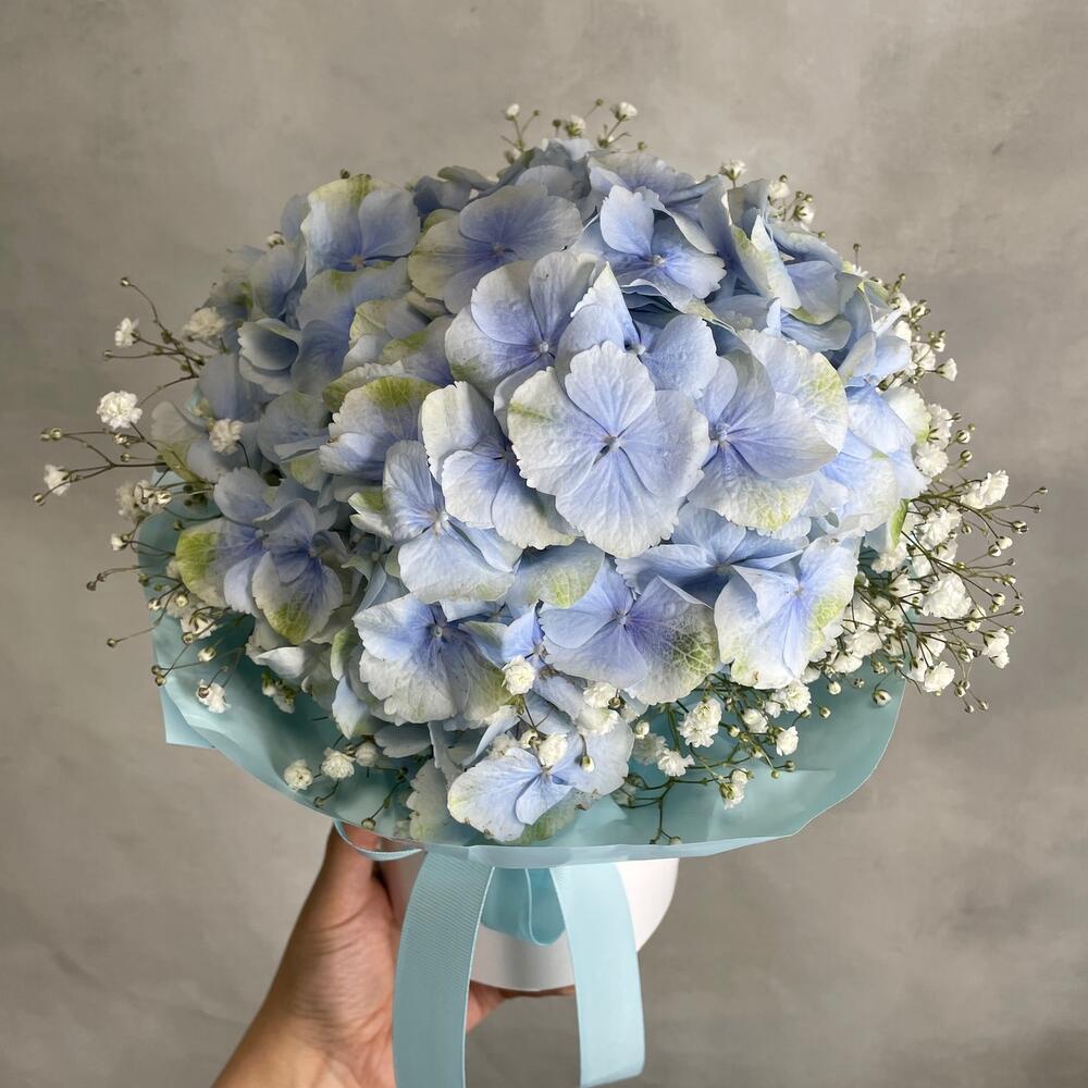 Гипсофила – 3 шт.Гортензия – 1 шт.Коробка шляпная – 1 шт.