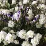 «Лавандовое созвездие» Букет из розы, гвоздики, статица и хлопка