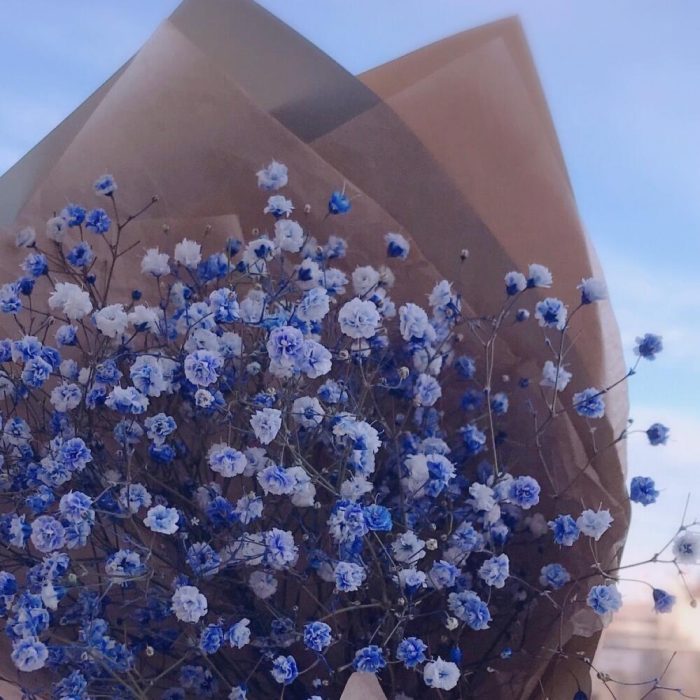 Мини букет из голубой гипсофилы