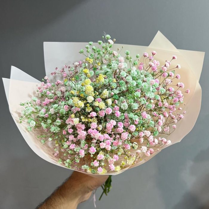 Гипсофила – 5 шт. Открыточка с вашими пожеланиями – 1 шт. Дизайнерская упаковка – 1 шт.
