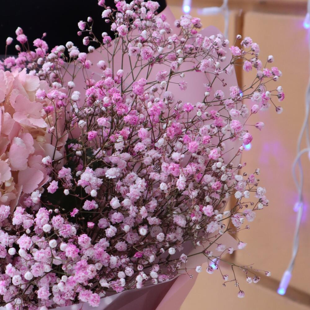 «Лавандовое созвездие» Букет из розы, гвоздики, статица и хлопка