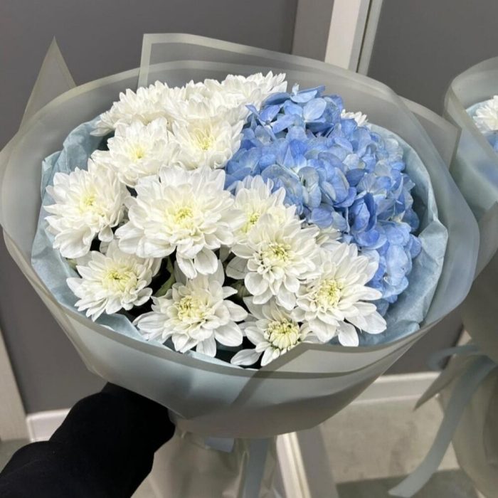 Гортензия – 1 шт. хризантемы кустовые – 4 шт.