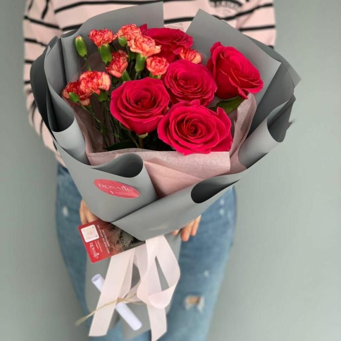 Букет из роз и альстромерии