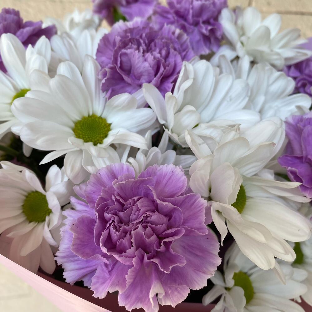 Хризантема кустовая – 4 шт.Упаковка – 1 шт.Гвоздика лунная – 7 шт.