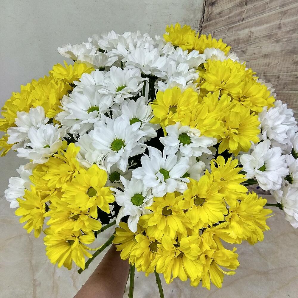 15 кустовых хризантем с зеленью