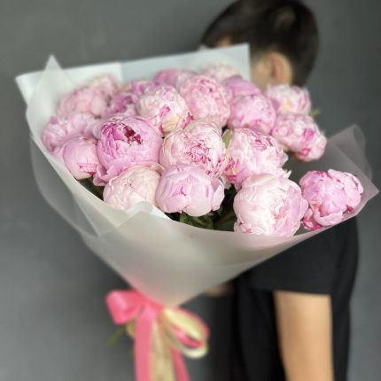 Яркий букет из пионов Coral Sunset, меняющих свой цвет