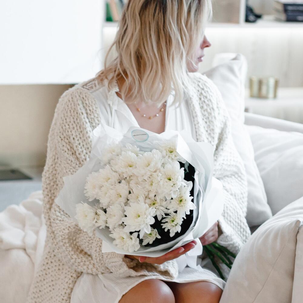 Букет из белой хризантемы "Раз ромашка -два ромашка"