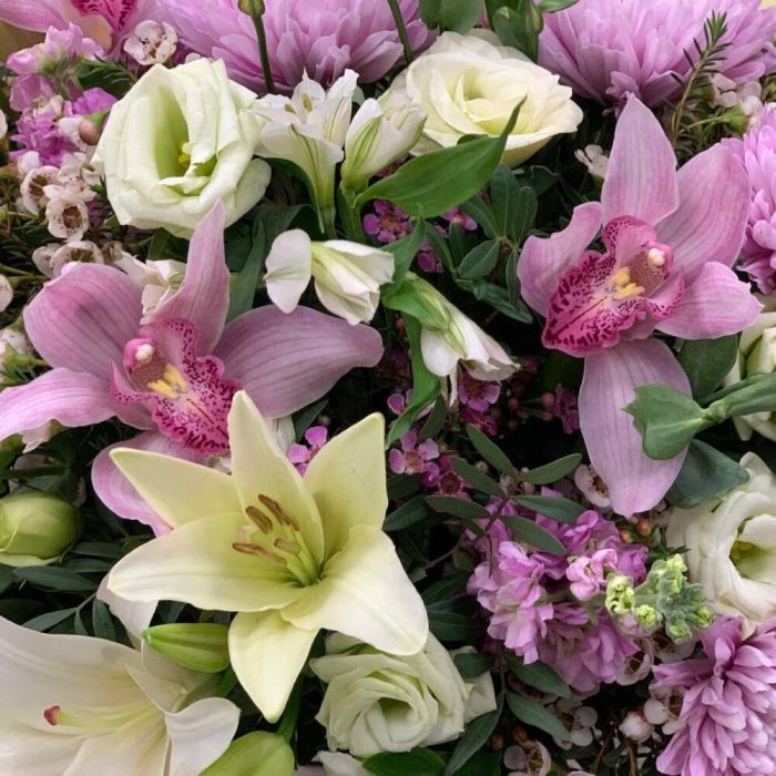 Категорий: Альстромерии, Лизиантусы, Лилии, Орхидеи, Хризантемы