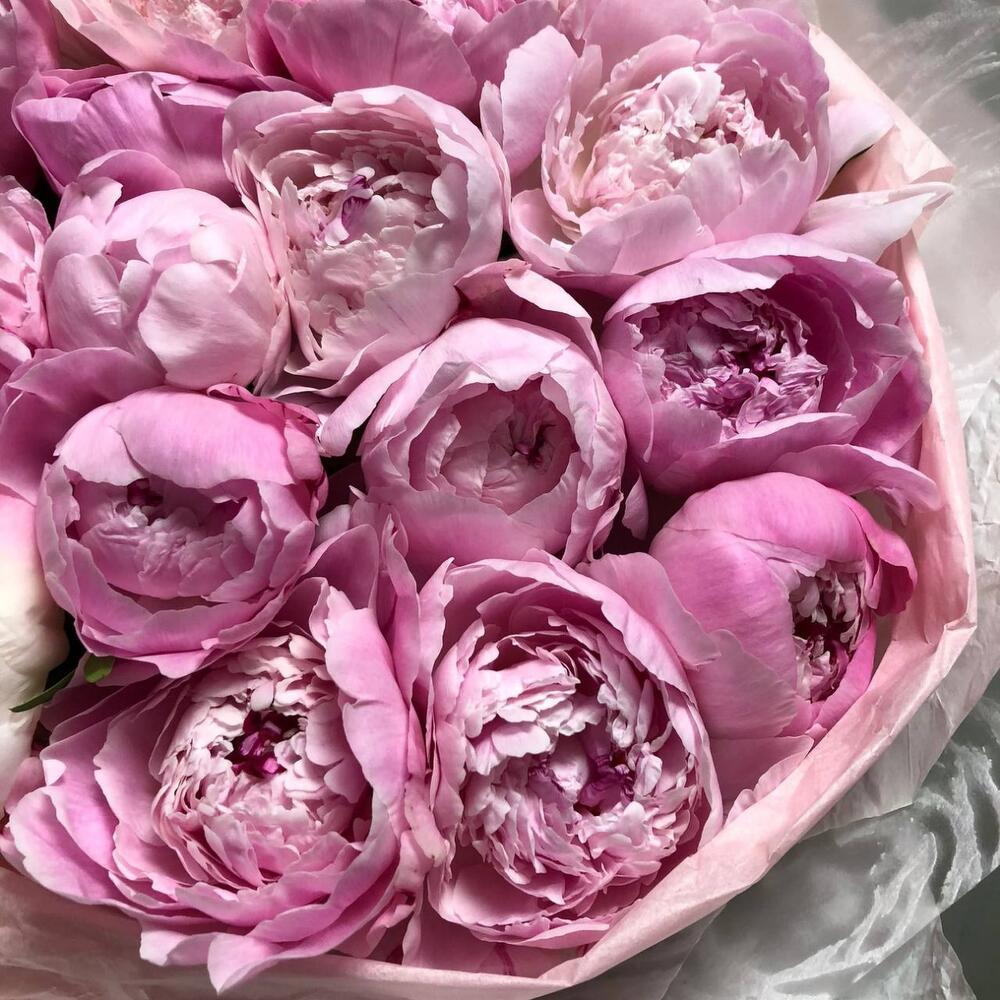 19 розовых пионов в упаковке