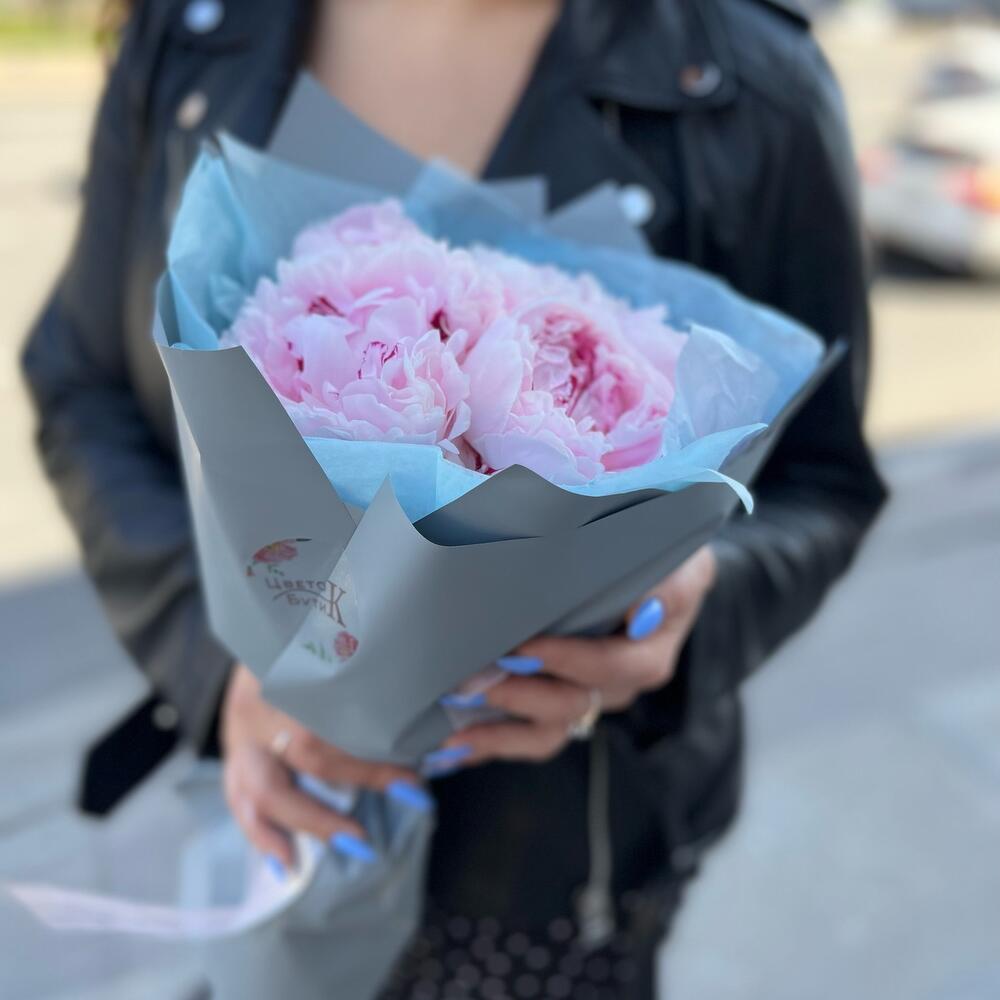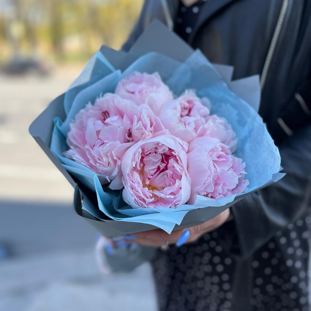 5 пионов нежно-розовых Сара Бернар