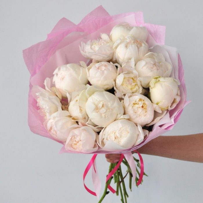 Пион – 15 шт.Лента атласная – 1 шт.Упаковка дизайнерская – 2 шт.