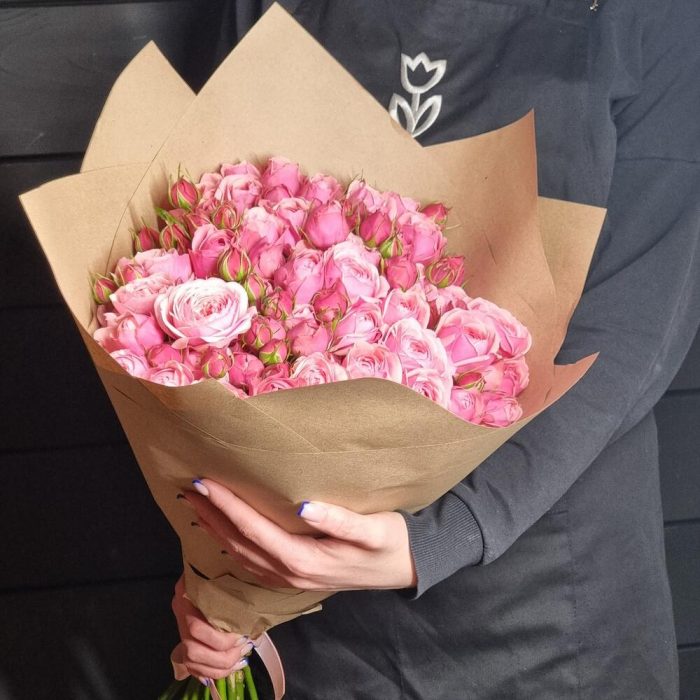 роза силва пинк пионовидная – 15 шт.Крафт упаковка – 1 шт.Лента атласная – 1 шт.