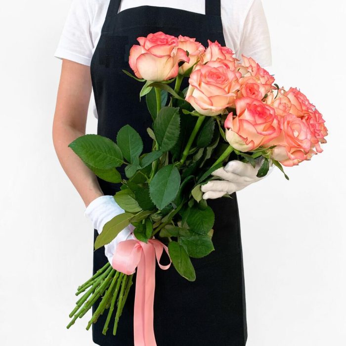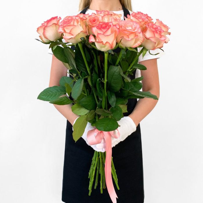 Нежный букет из бело-розовых роз Джумилия с атласной лентой – это мега крутая возможность порадовать свою вторую половинку красивым букетом свежих роз.