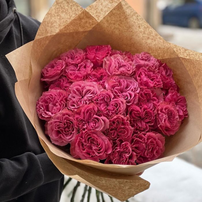 Лента атласная – 1 шт.Упаковка крафт – 3 шт.роза кантри блю – 25 шт.