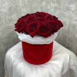 27 элитных роз в шляпной бархатной коробке