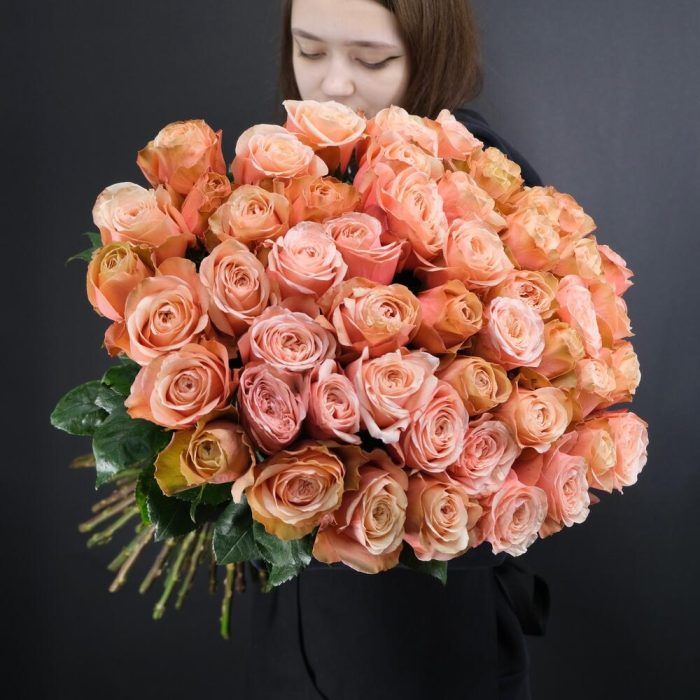 Атласная лента – 1 шт.Роза кахала – 51 шт.подкормка для срезанных цветов – 1 шт.инструкция по уходу за цветами – 1 шт.