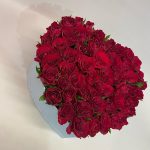 Роза красная – 51 шт.Коробка-сердце – 1 шт.Оазис флористический – 2 шт.