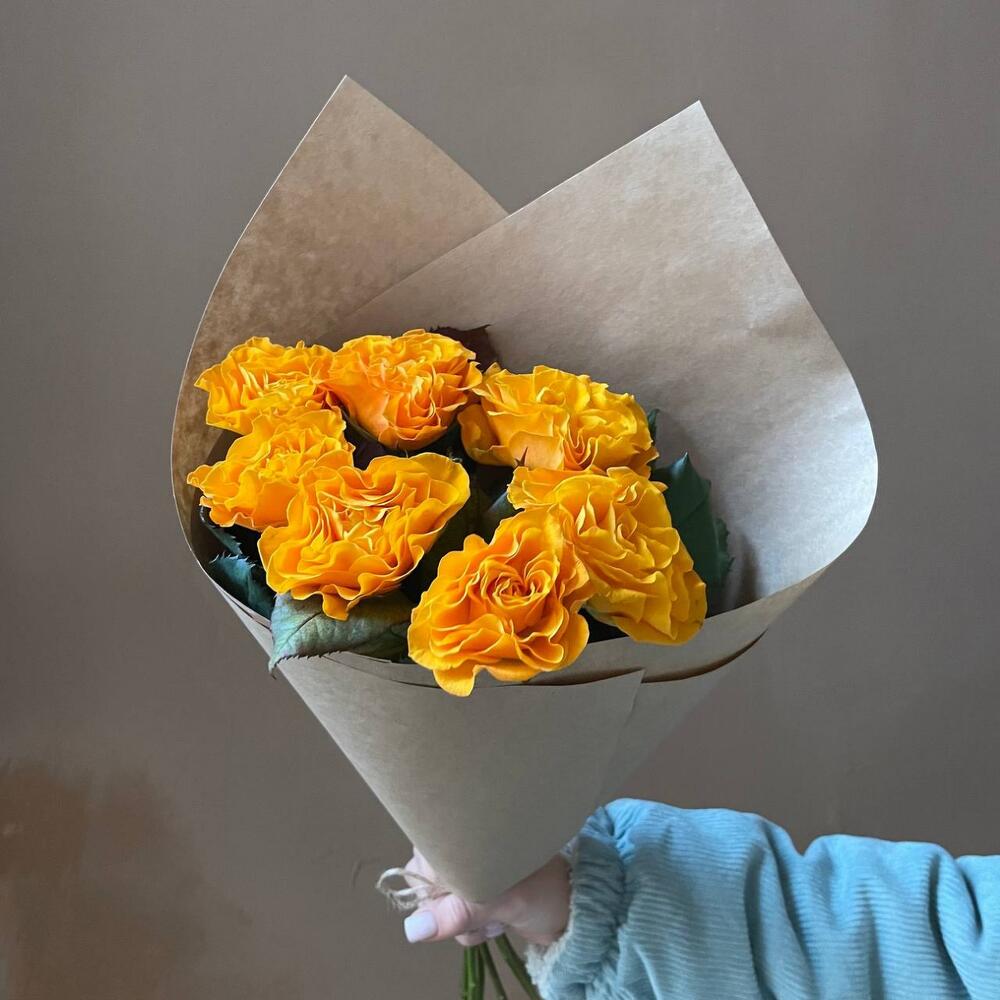 Крафтовая упаковка – 1 шт.роза россия оранжевая – 7 шт.