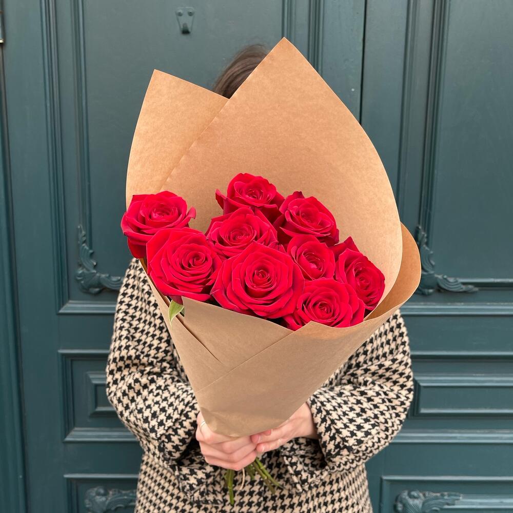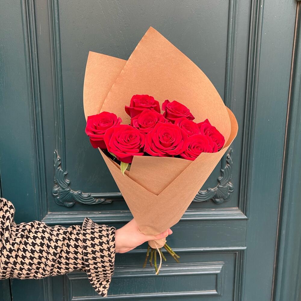 9 красных роз в крафте
