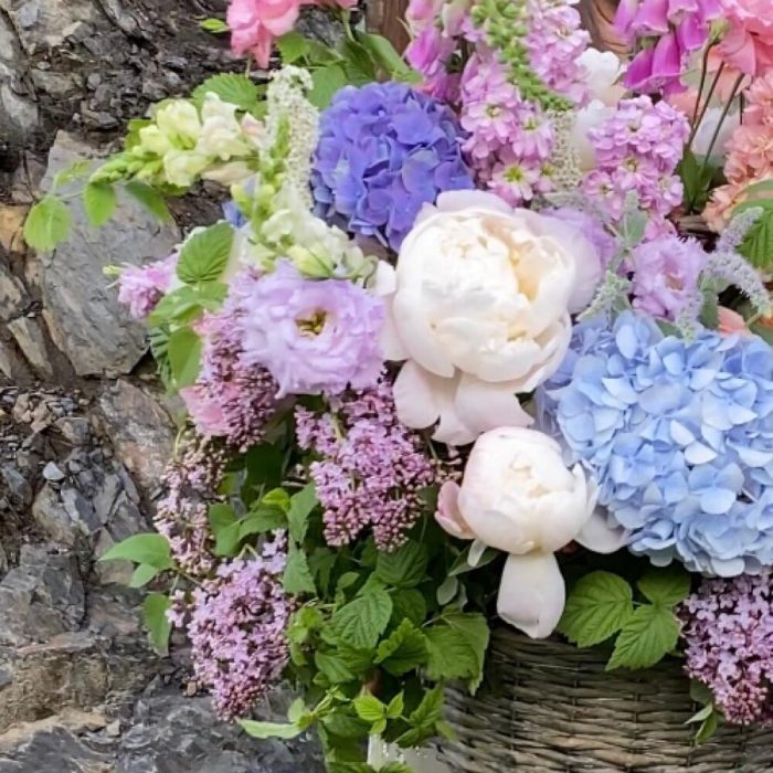 Твой сад - Огромная корзина с пионами, сиренью и колокольчиками