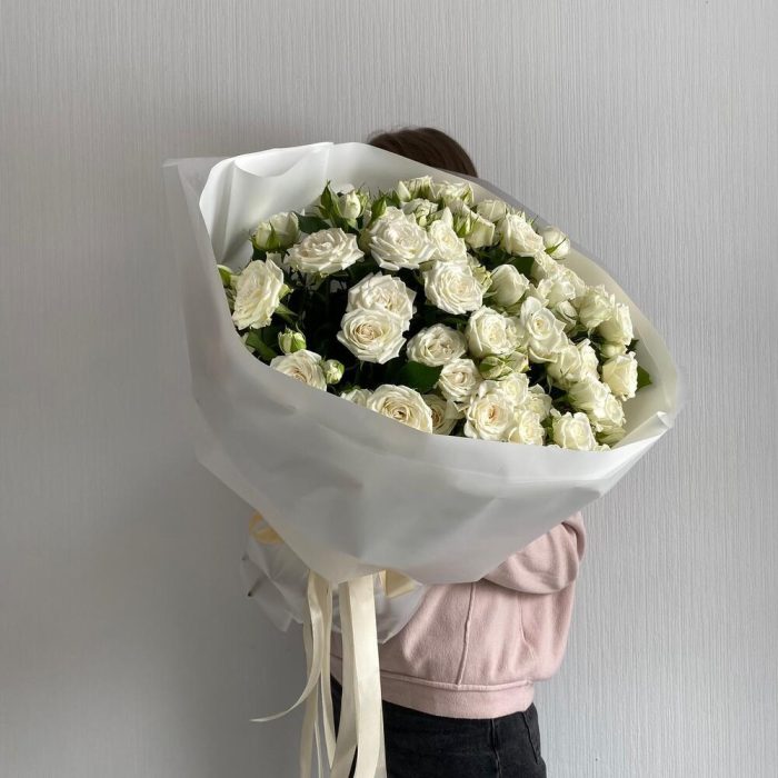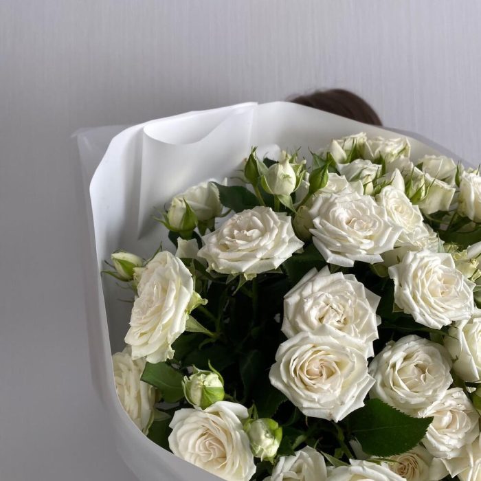 Белоснежный букет из кустовых роз