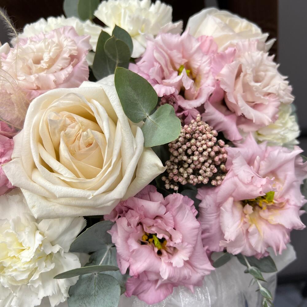 Категории: Гвоздики, Лизиантусы, Пионовидные розы, Розы