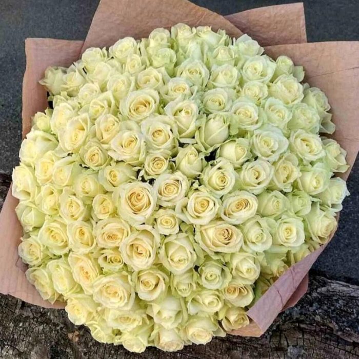 Роза белая – 101 шт. оформление бумага – 1 шт.