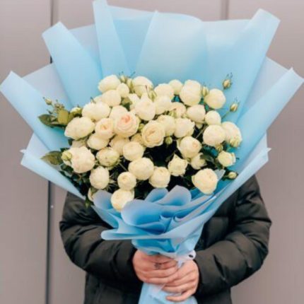 Роза украинская – 17 шт. Упаковка калька флористическая – 1 шт.