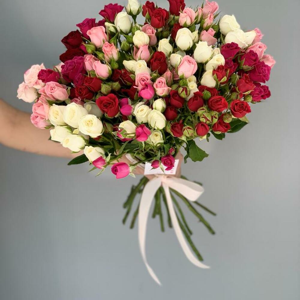Альстромерии, Гвоздики, Кустовые розы, Лизиантусы, Розы, Хризантемы