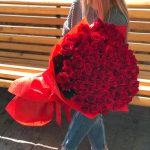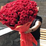 Большой, объемный букет из 101 метровой Розы, стильно упакованный в мешковину. Действительно, шикарный подарок для самой любимой!
