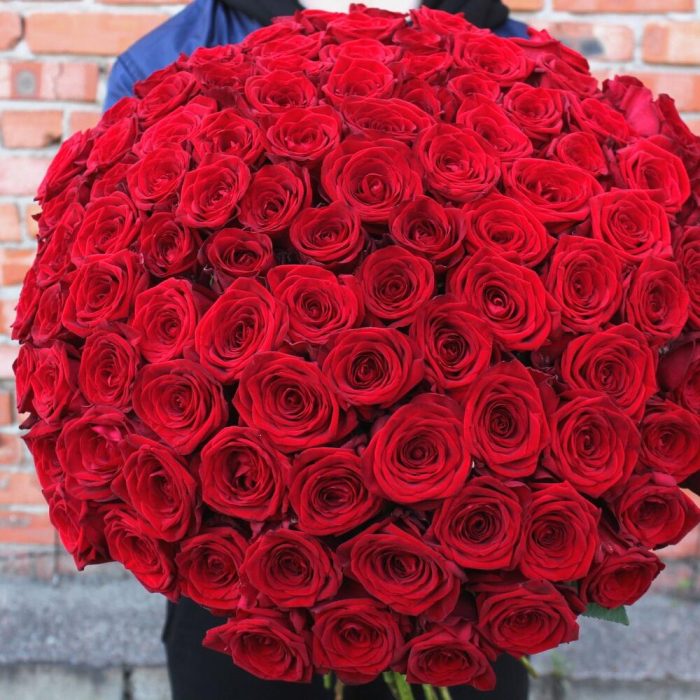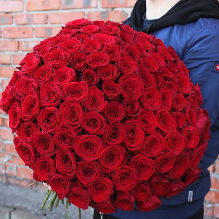Лента атласная – 1 шт.Роза красная 60 см – 101 шт.