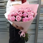 роза россия розовая 70 см – 25 шт.Упаковка дизайнерская – 3 шт.Лента атласная – 1 шт.