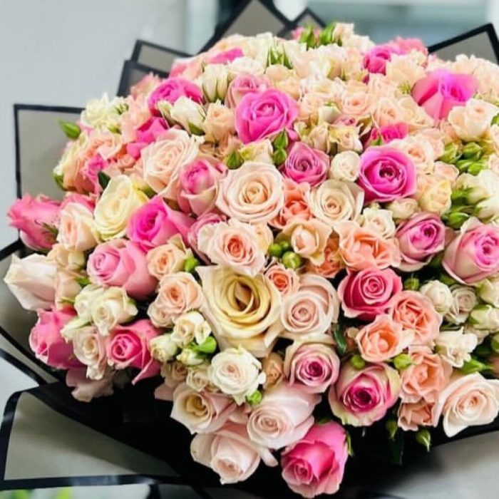 ассорти роз – 51 шт.Упаковка дизайнерская – 1 шт.Лента атласная – 2 шт.Открытка – 1 шт.инструкция по уходу за цветами – 1 шт.хорошее настроение – 100 шт.коробка переноска – 1 шт.Кризал – 1 шт.роза кустовая ассорти – 50 шт.