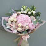 Альстромерии, Гвоздики, Кустовые розы, Лизиантусы, Розы, Хризантемы