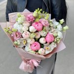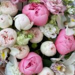 Ящик с пионами и пионовидными розами