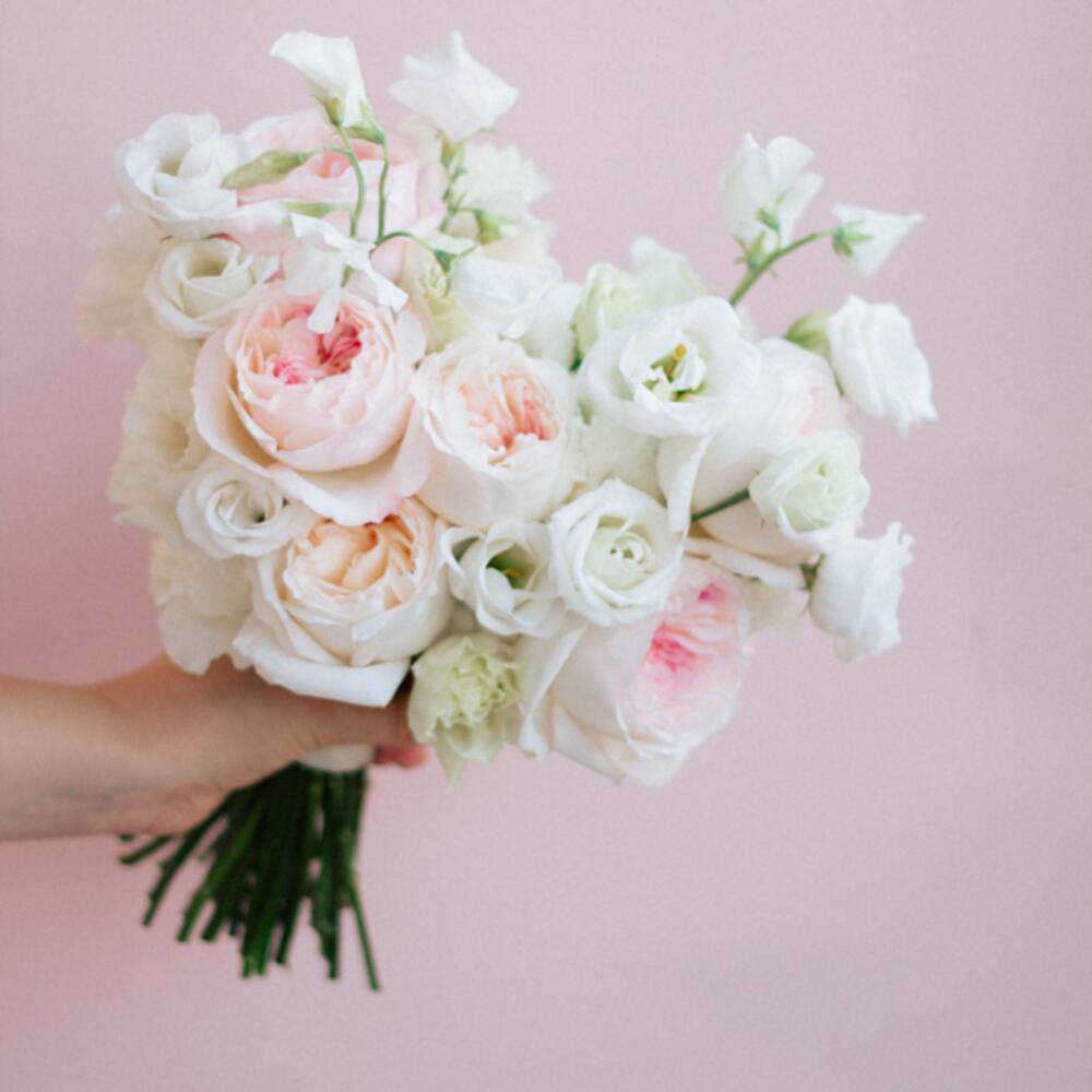 Роза пионовидная – 9 шт.Лизиантус – 4 шт.Латирус – 6 шт.