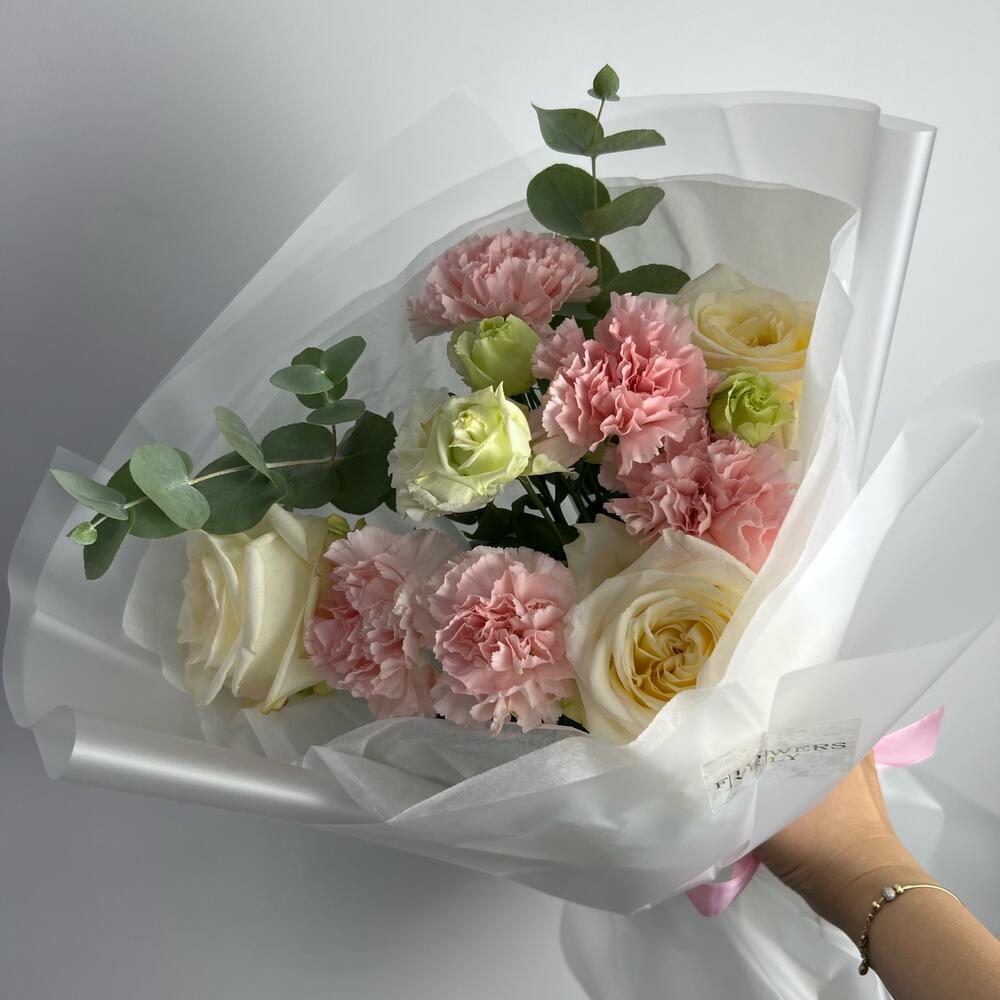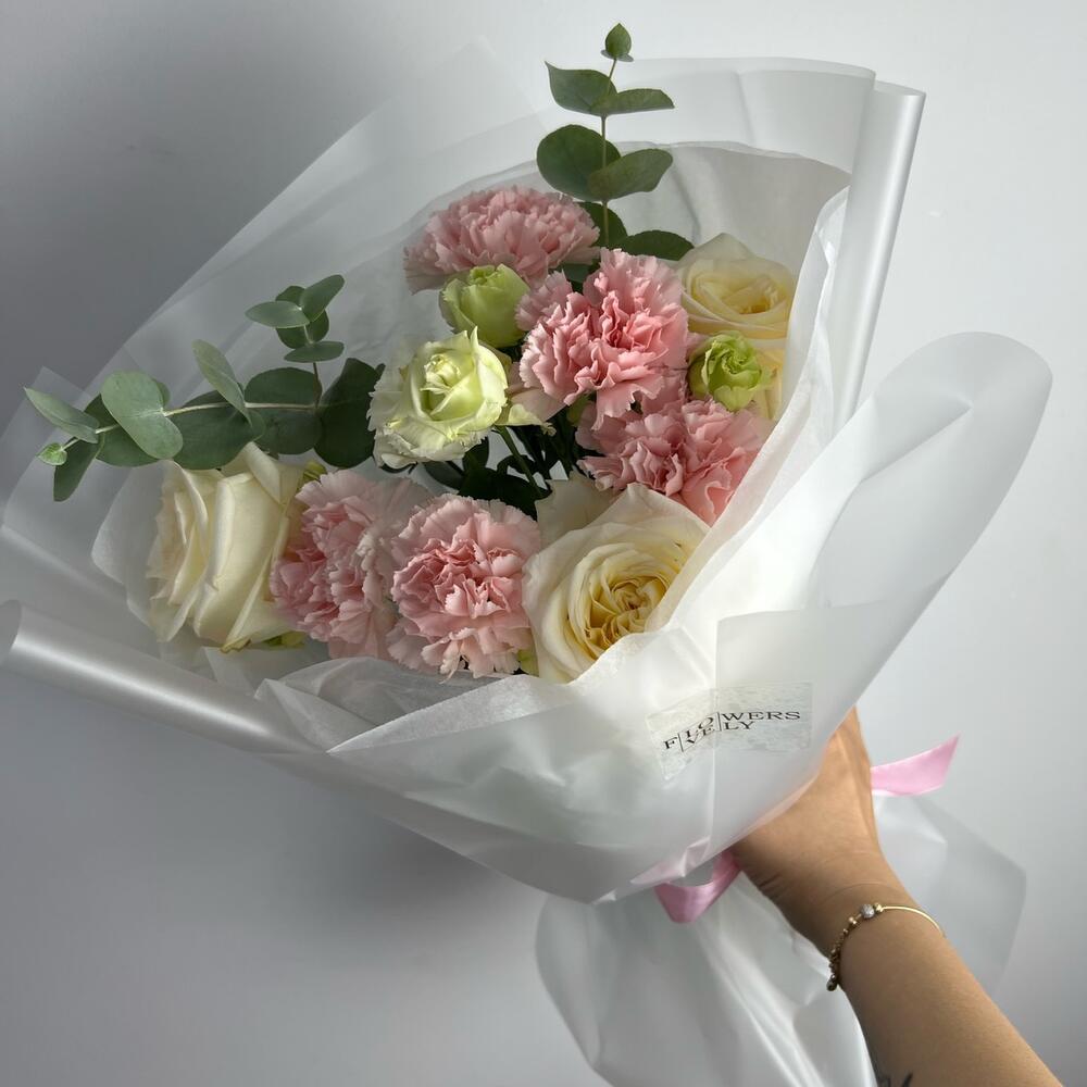 Гвоздики, Лизиантусы, Розы