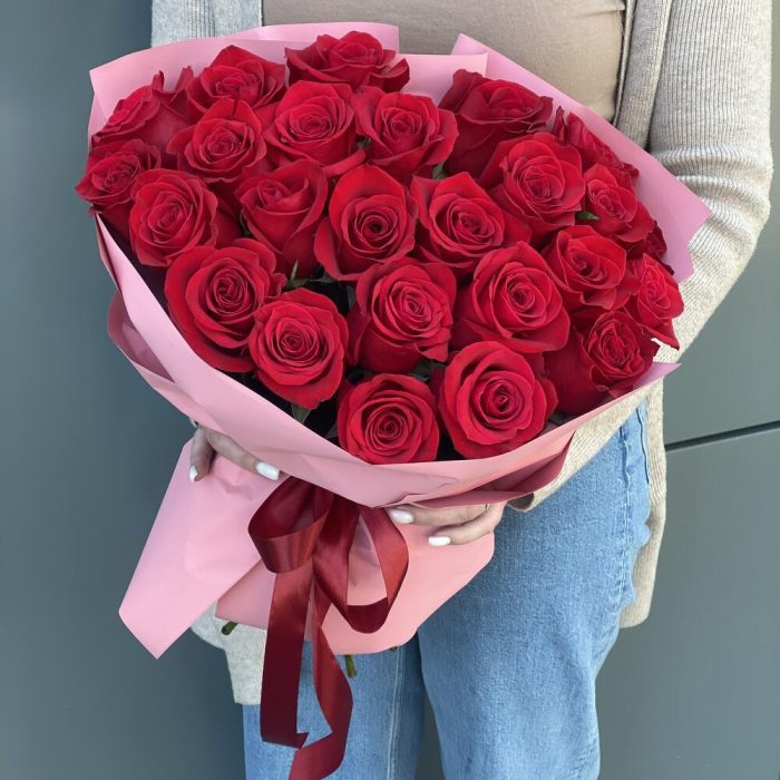 Метки: 25 роз, Красные розы, от 4000 до 5000 руб, Роза 50 см