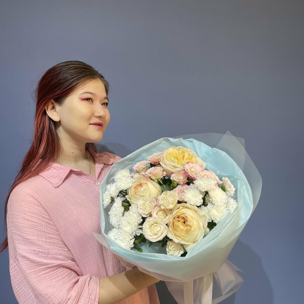 Гвоздики, Кустовые розы, Пионовидные розы, Розы