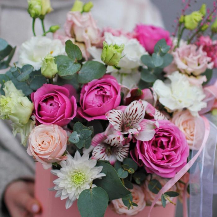 Категорий: Альстромерии, Гвоздики, Лизиантусы, Пионовидные розы, Розы, Хризантемы