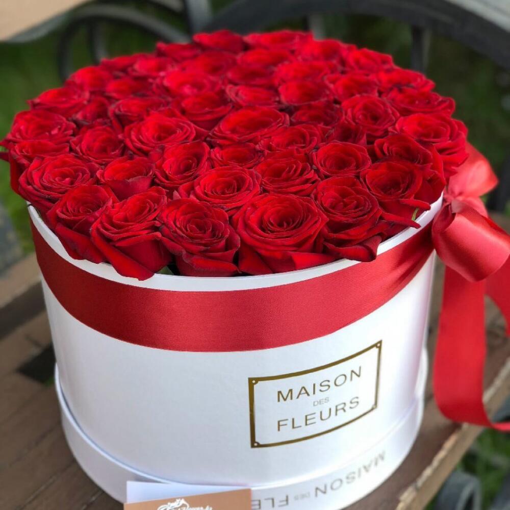13 красных роз в коробке